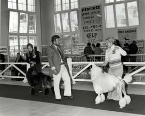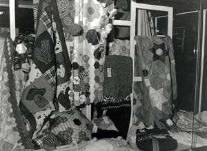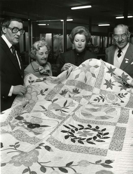 A panel of judges select the Best in Show craft award, known as the Florence Monod Memorial Trophy, from the best exhibit in each craft class in the Art, Craft & Cookery competition at the Royal Melbourne Show. Judges, left to right: Mr J B Parry, (RASV), Mrs G Starritt, Lady Murray, Mr G Starritt (President RASV)