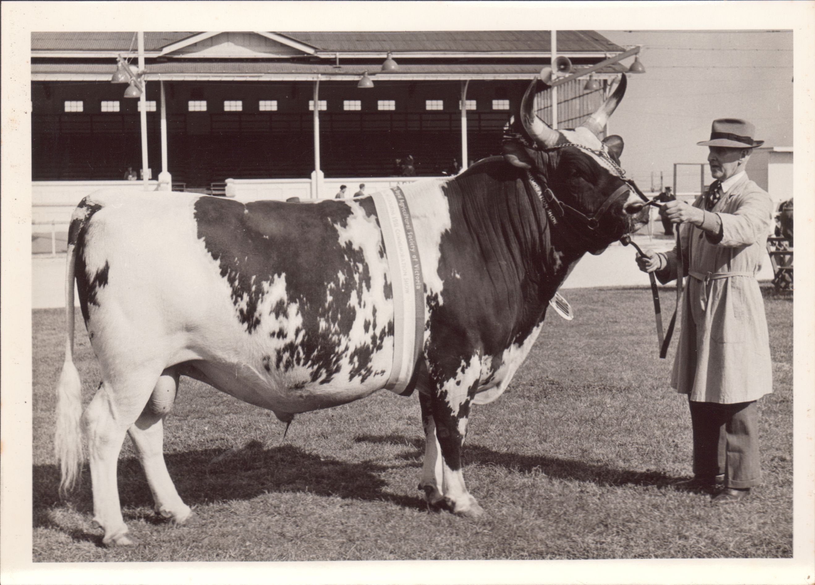 This item is a part of a larger collection of 4,500 Frank Johnson photographs and negatives donated to Melbourne Royal by Frank Johnson’s daughter, Francis Beatty Wallace in 2016. This collection spanning from the 1930s to the 1980s holds important social and historical significance in preserving and sharing Victoria’s agricultural history and community. The photographs capture the local, regional, and state’s shared relationships developed through agriculture and the importance of farming and husbandry to the population and development of Australia.
