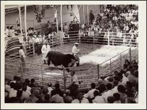 This item is a part of a larger collection of 4,500 Frank Johnson photographs and negatives donated to Melbourne Royal by Frank Johnson’s daughter, Francis Beatty Wallace in 2016. This collection spanning from the 1930s to the 1980s holds important social and historical significance in preserving and sharing Victoria’s agricultural history and community. The photographs capture the local, regional, and state’s shared relationships developed through agriculture and the importance of farming and husbandry to the population and development of Australia.
