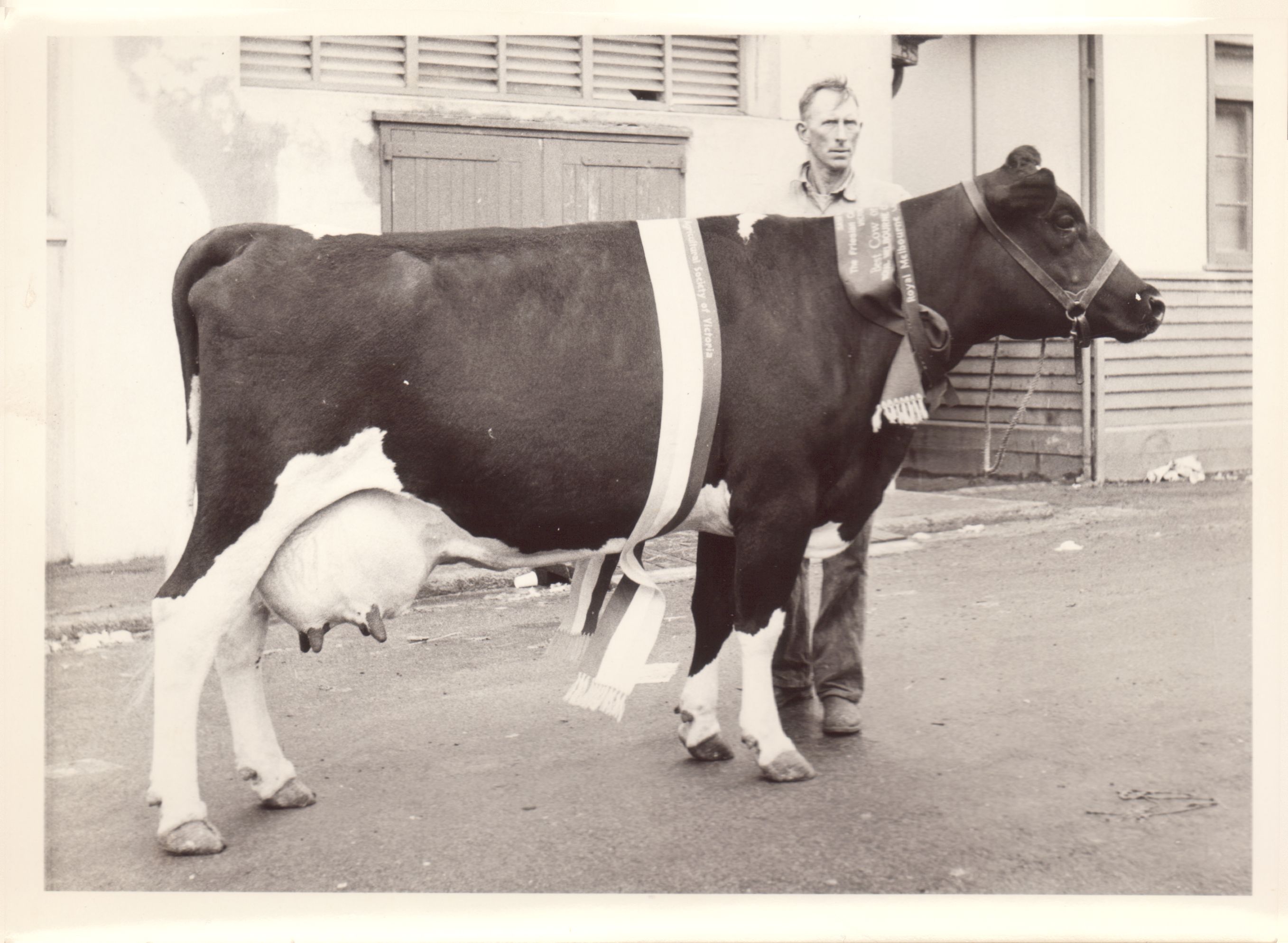 This item is a part of a larger collection of 4,500 Frank Johnson photographs and negatives donated to Melbourne Royal by Frank Johnson’s daughter, Francis Beatty Wallace in 2016. This collection spanning from the 1930s to the 1980s holds important social and historical significance in preserving and sharing Victoria’s agricultural history and community. The photographs capture the local, regional, and state’s shared relationships developed through agriculture and the importance of farming and husbandry to the population and development of Australia.