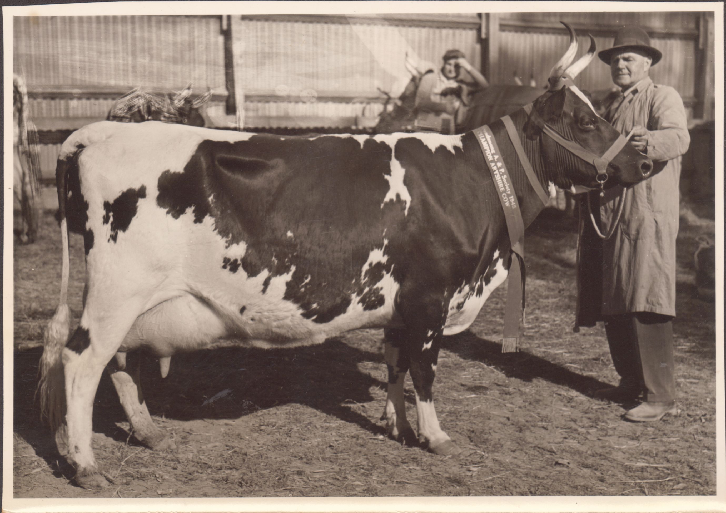 This item is a part of a larger collection of 4,500 Frank Johnson photographs and negatives donated to Melbourne Royal by Frank Johnson’s daughter, Francis Beatty Wallace in 2016. This collection spanning from the 1930s to the 1980s holds important social and historical significance in preserving and sharing Victoria’s agricultural history and community. The photographs capture the local, regional, and state’s shared relationships developed through agriculture and the importance of farming and husbandry to the population and development of Australia.